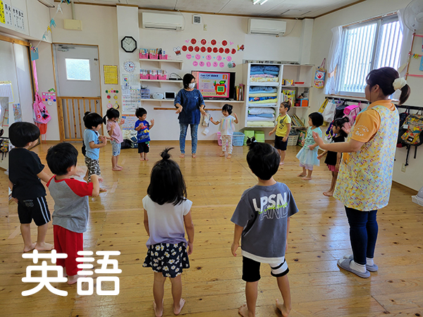 キラキラ(0歳児)、サンサンC(1歳児)、サンサンB(2歳児)、サンサンAあお(3歳児)、サンサンAきいろ(4歳児)、サンサンAあか(5歳児)